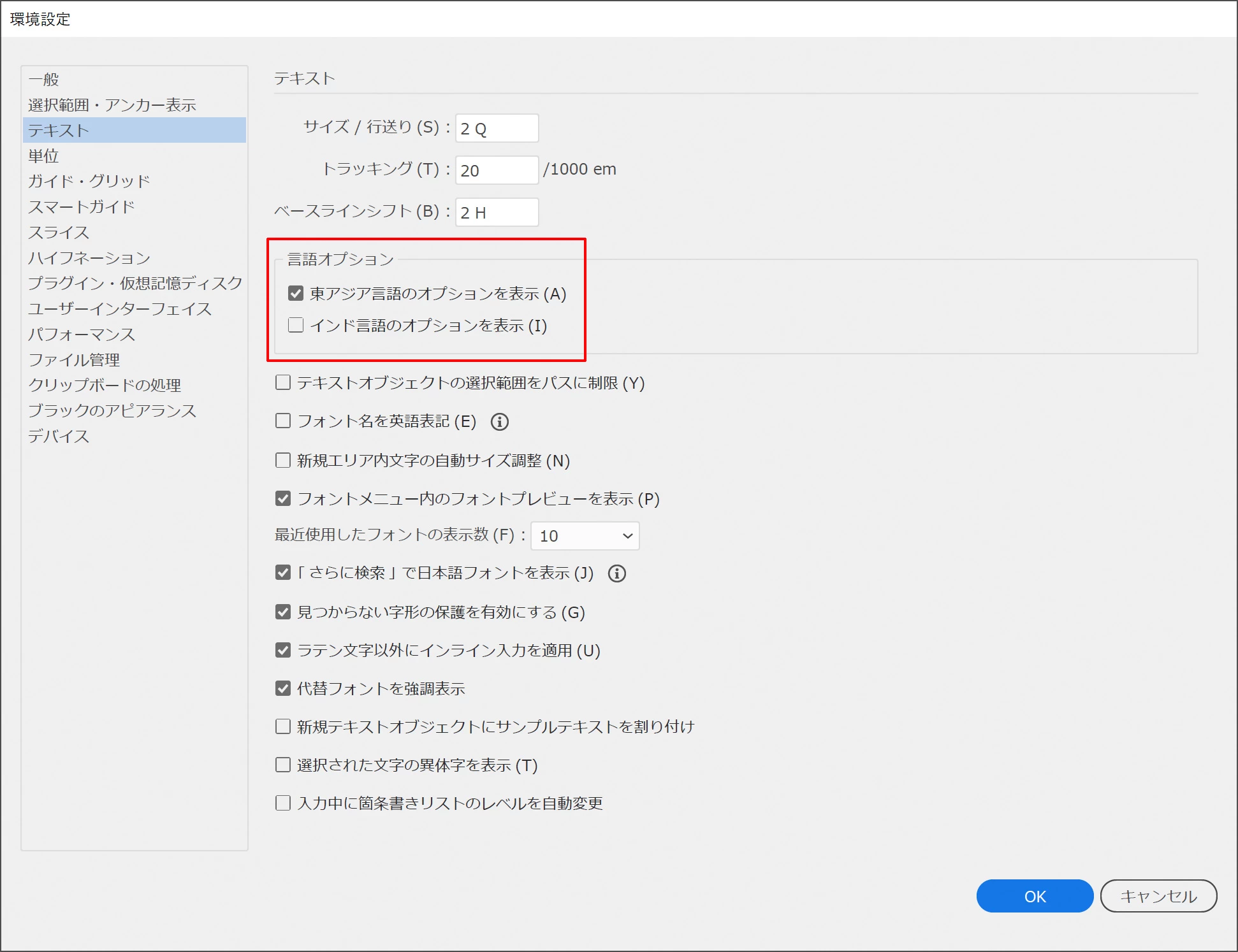 環境設定→テキストの「東アジア言語のオプションを表示」のチェックが外れていませんか?