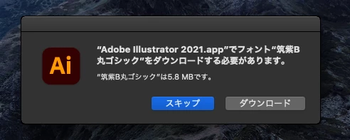 その後セーフモードで何度か再起動中に、イラレを立ち上げるとTsuku◯Fontをダウンロードしてくださいとメッセージが出て、ダウンロードしました。