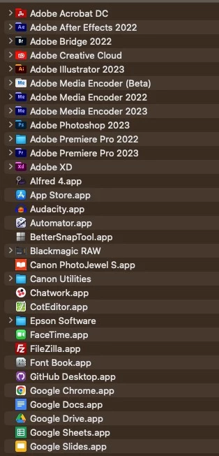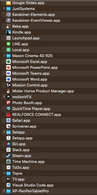 使用しているアプリケーションは画像に添付してみました。