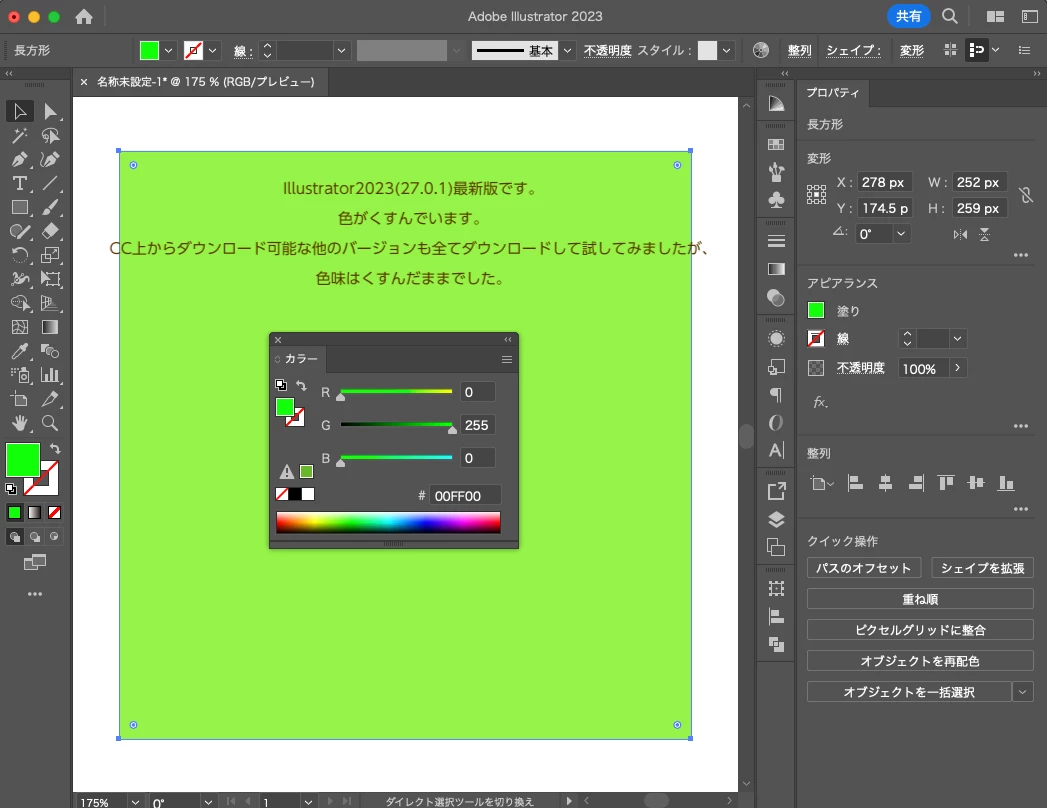 Illustrator2023(ver.27.0.0)のGPUプレビューで色味が正しく表示されません