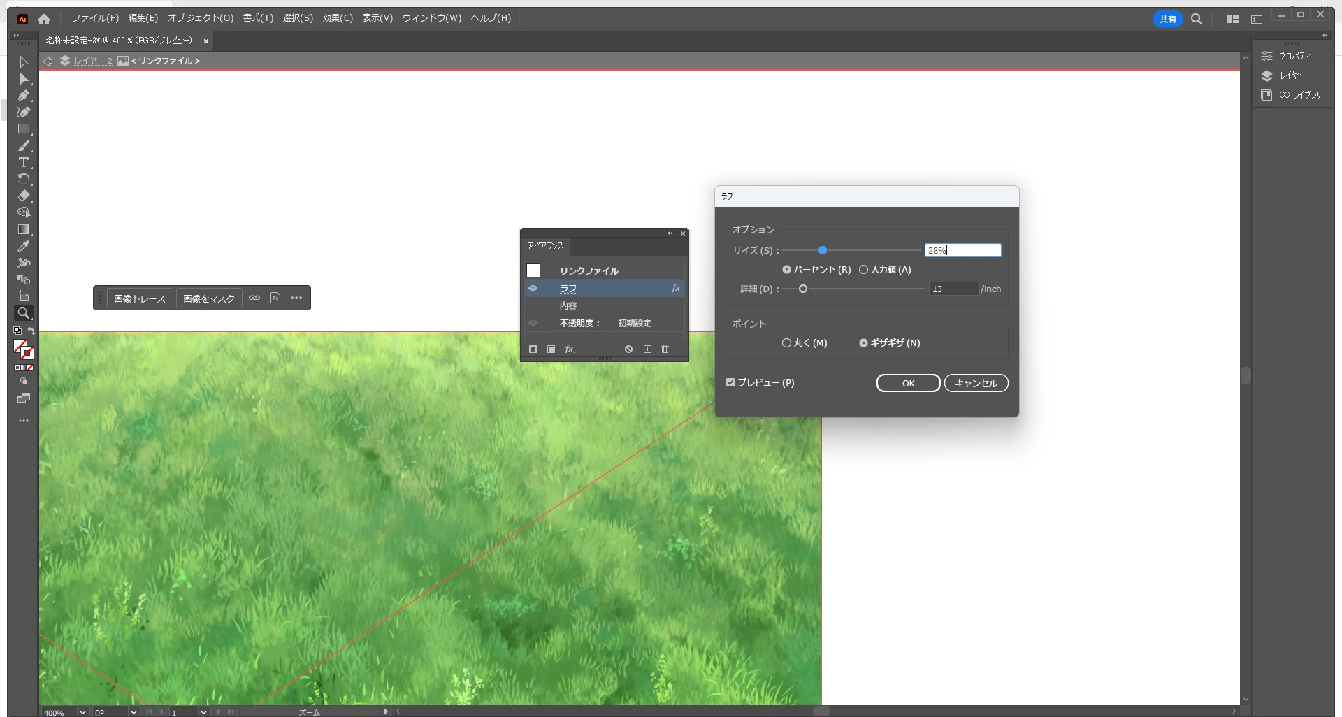 illustrator2024でラフ効果が適用されない