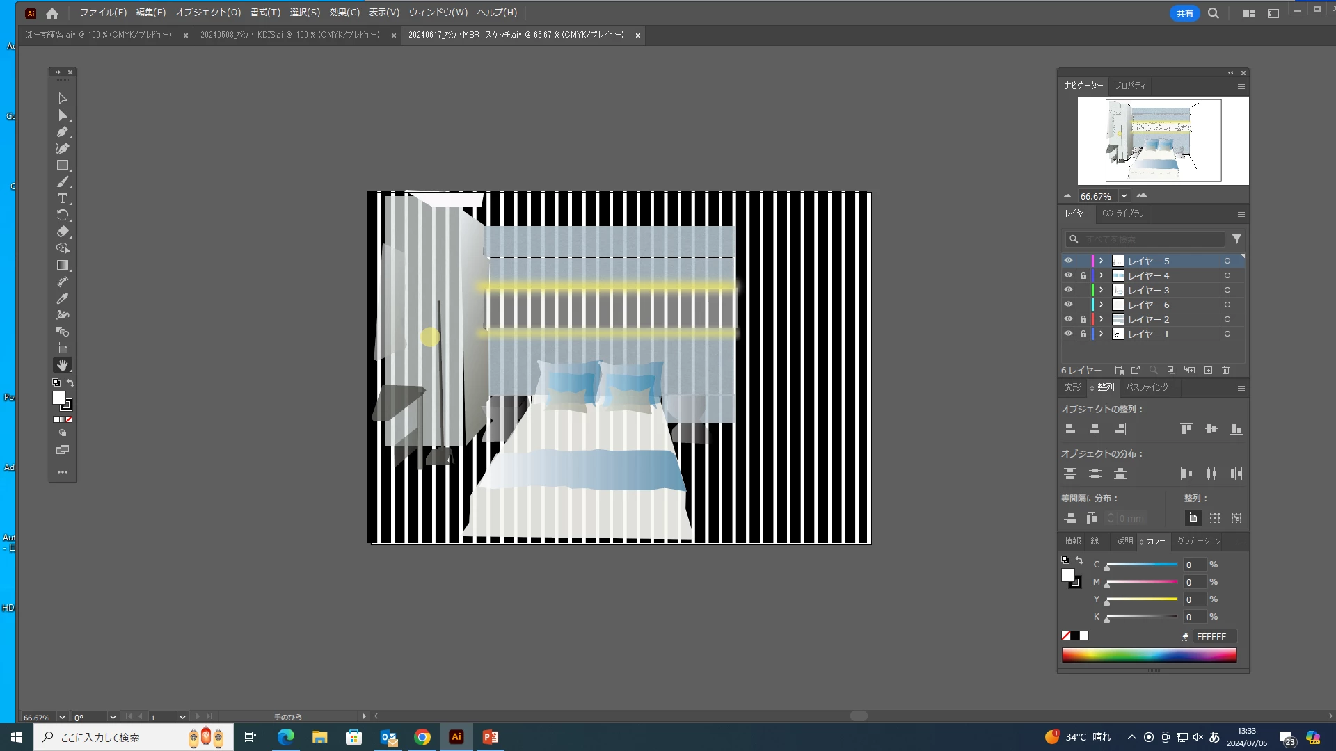 という操作方法があったので試してみたところ、「白黒の縞々」の表示は消えました。