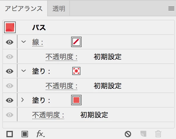色ベタの塗りの上に、パターンの塗りがを重ねている状態です。