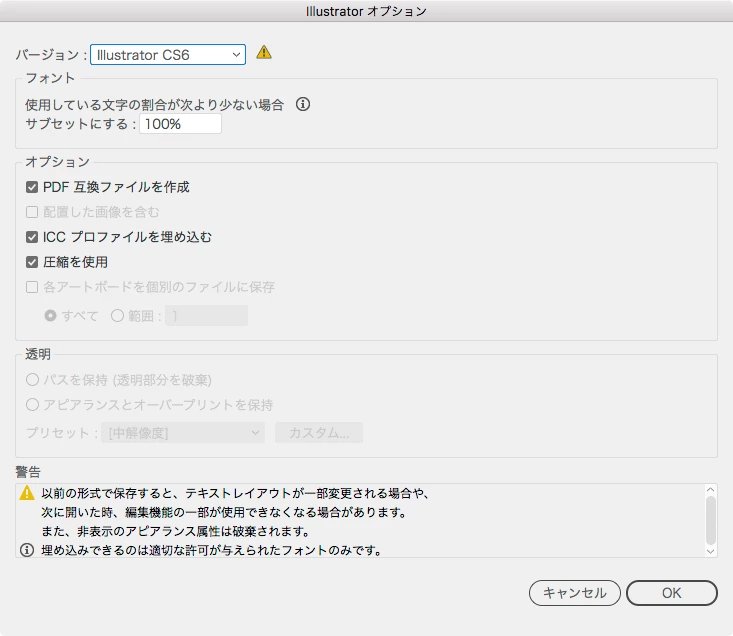 Windows版のillustratorCC2018を使っています。先方からCS6のファイルにして提出してほしいと言われました。CC2018の保存のオプションにはCS6で保存することができないのでしょうか?