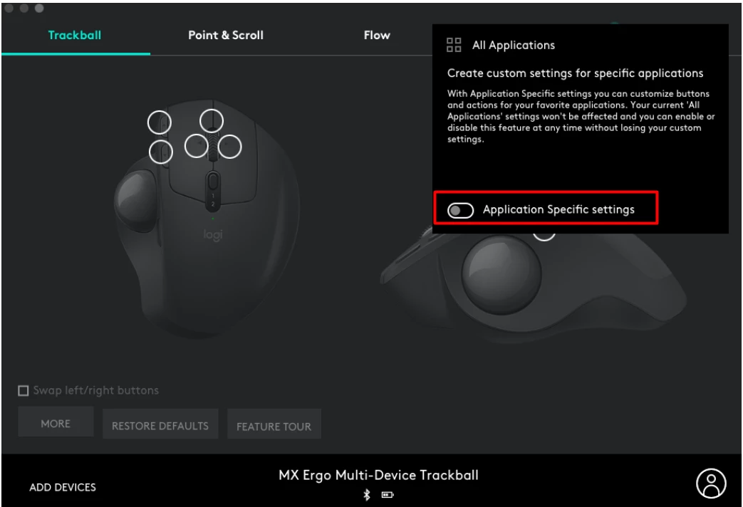 If updating Logitech drivers hasn't helped resolve this issue, please try this try disabling "Application Specific Settings" in Logitech options.