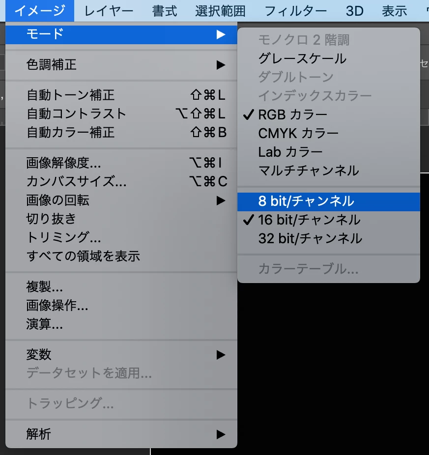 ひとまずは、Photoshop等で8bit画像に変換すればOKです。