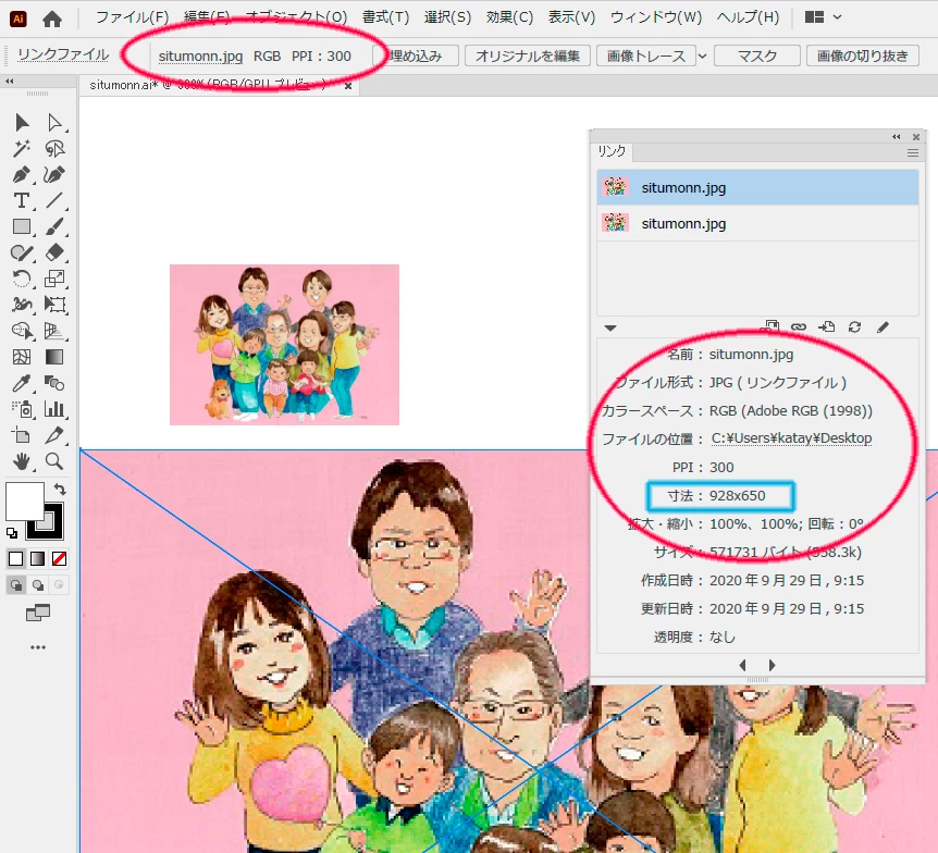 Illustratorでもリンクパネルやコントロールパネルで選択すると配置時の解像度は出ますが、調整等はやはりPhotoshopが必要です。