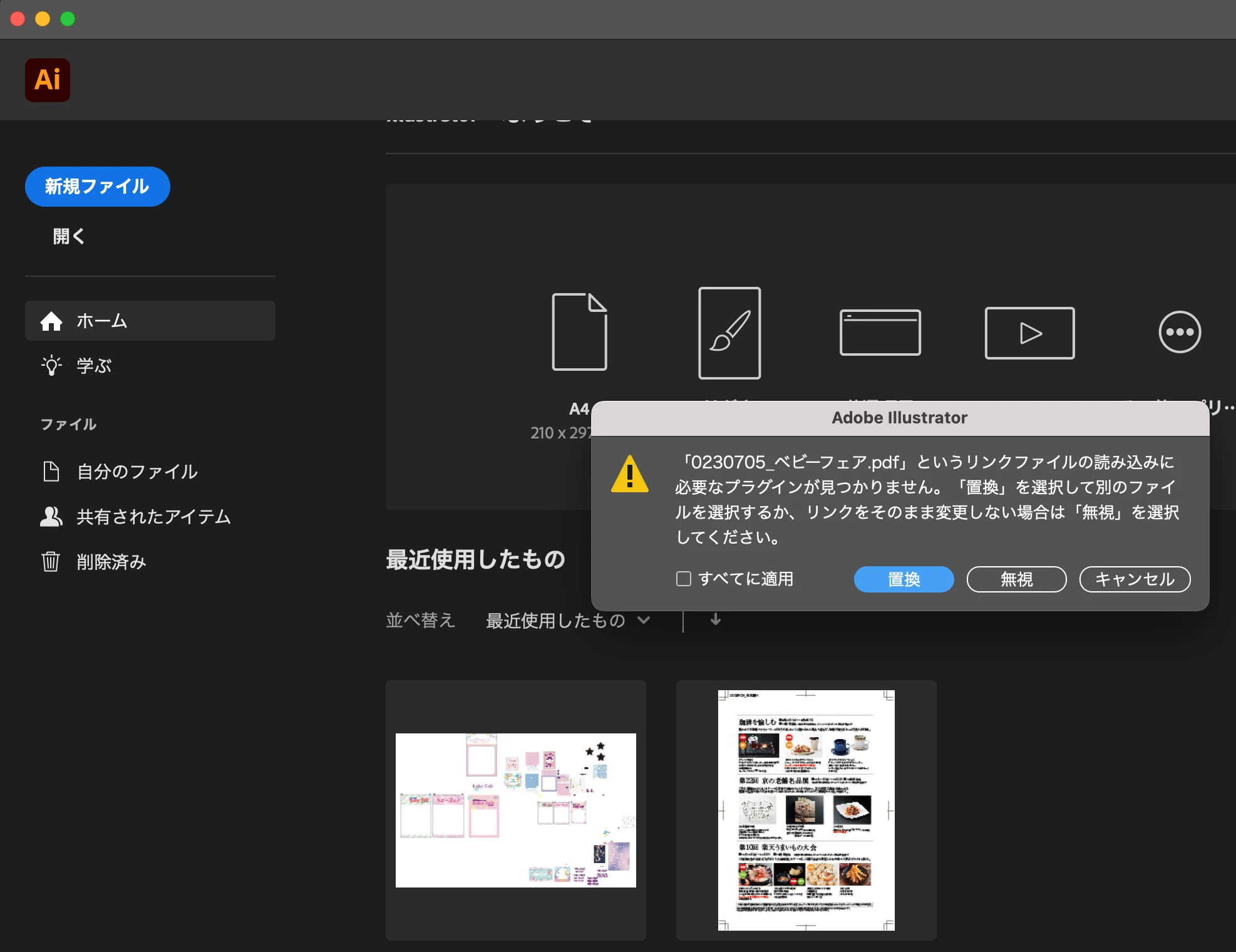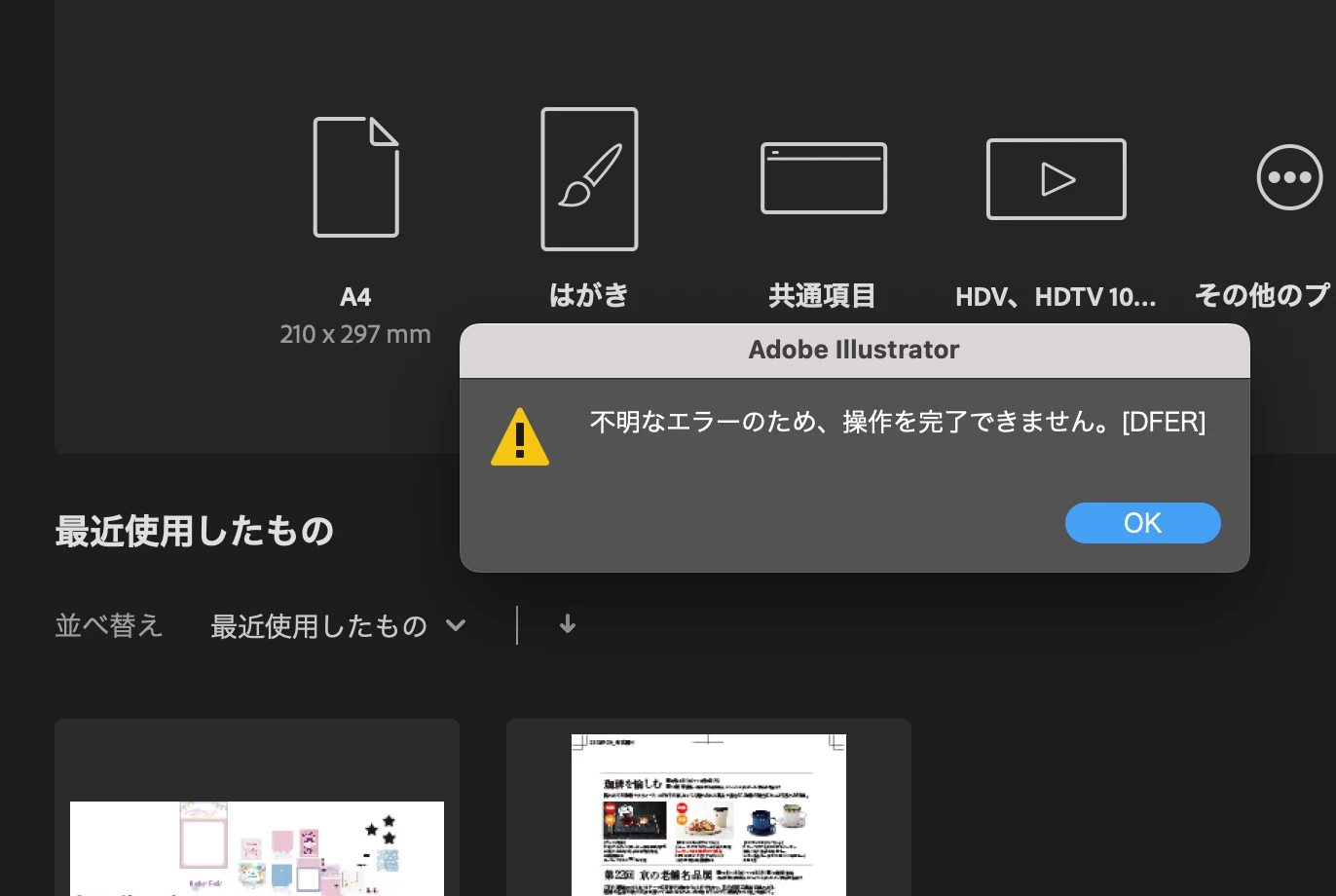 mac イラレ エラーについて