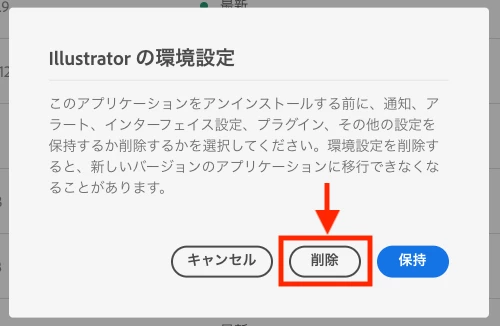 アンインストール時に下記の表示が出ますが、必ず「削除」ボタンを押してください。
