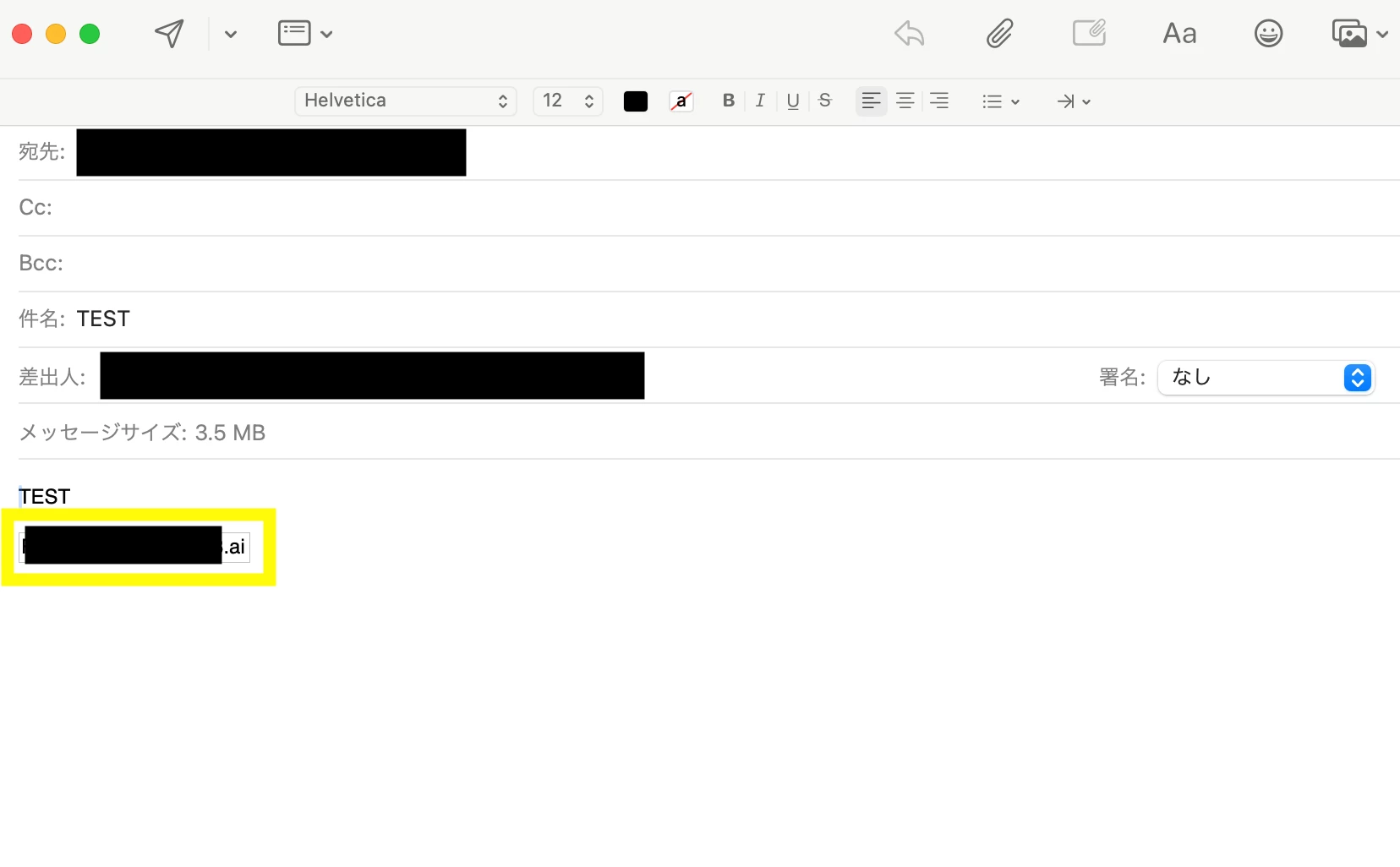 macbook(OS/Sonoma14.2)にて、拡張子が.aiのファイルをメール添付するとプレビューが表示されずにメールサイズのみが加算されてしまいます。