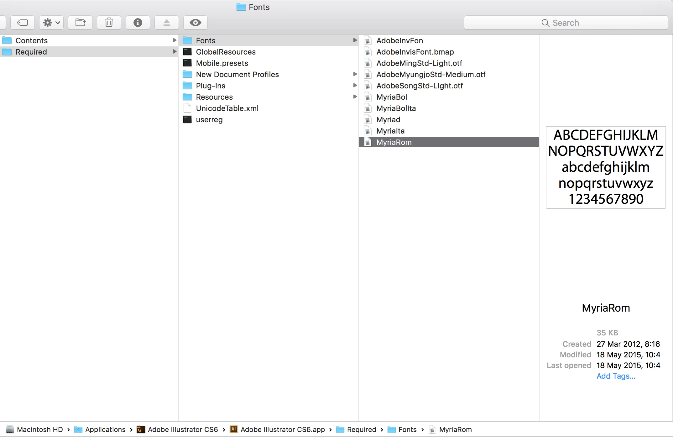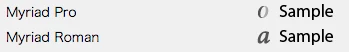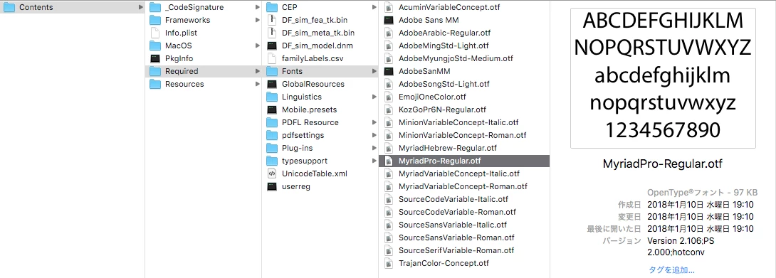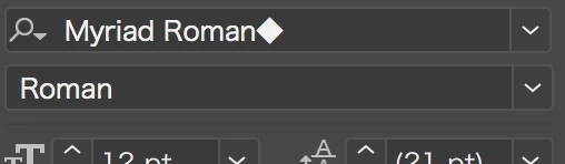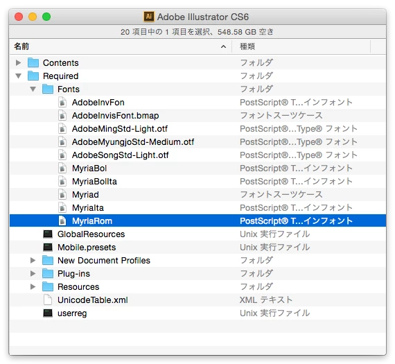 IllustratorのフォントリストにMyriadRomanが見つからないとの表示が出たままになっています。