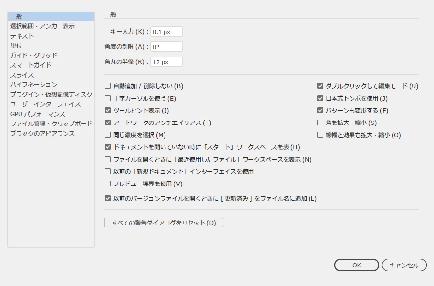 元々、環境設定の「キー入力」は0.25pxにしており、