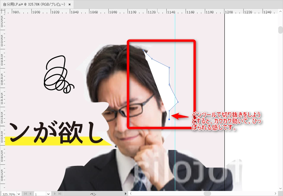 また、ペンツールの動く角度もカクカクしている感じ(ひっぱられる感じ)で