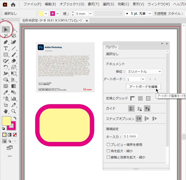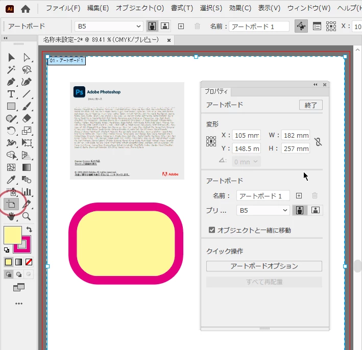 ※新たに作成されたアートボードは、なぜか幾重にも複数の同じサイズのアートボードが重なっていました。(5~6枚くらい)