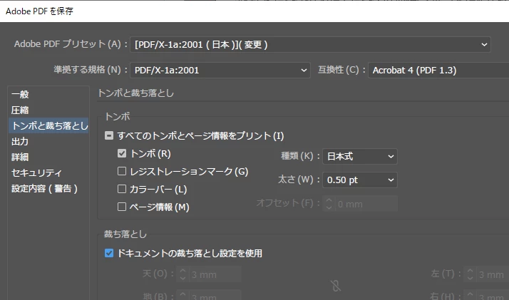 トンボにチェックを入れ裁ち落とし3mmにした後、ドキュメントの裁ち落とし設定を使用にチェックを入れると、3mmと薄くなる時と0mmとなるときがある。これを3mmにするにはどうしたらよいですか?