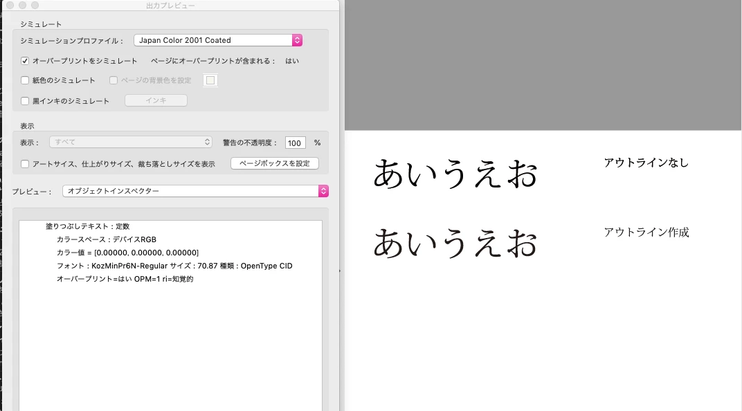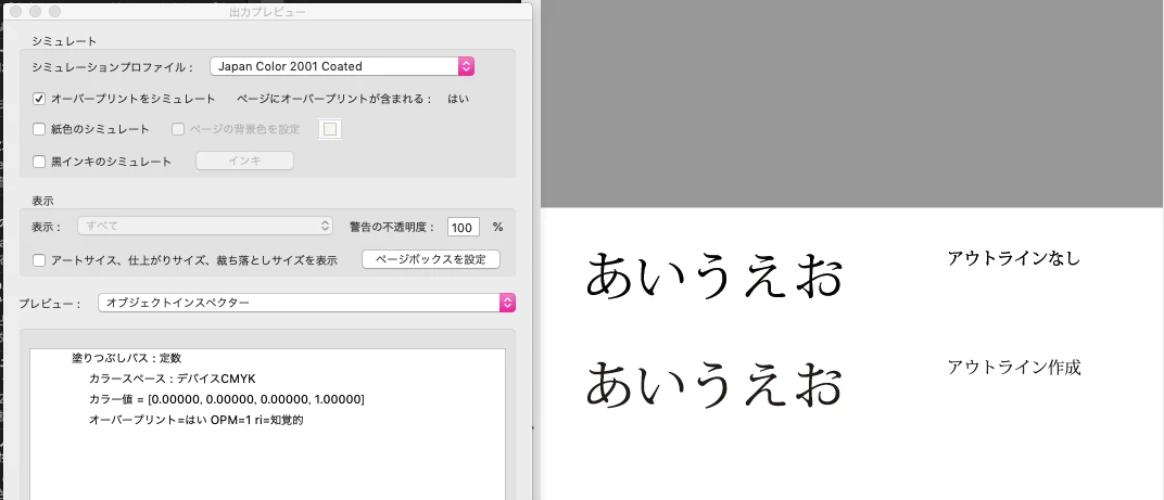 イラレCC2019で文字のアウトラインをとらないでPDF変換するとK100%の文字がCMYにも色が付くのはなぜですか?
