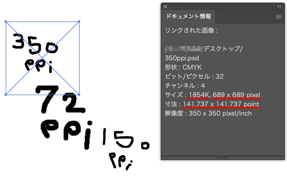 (もちろんイラレでも、サイズは同じ状態で解像度を見ています)