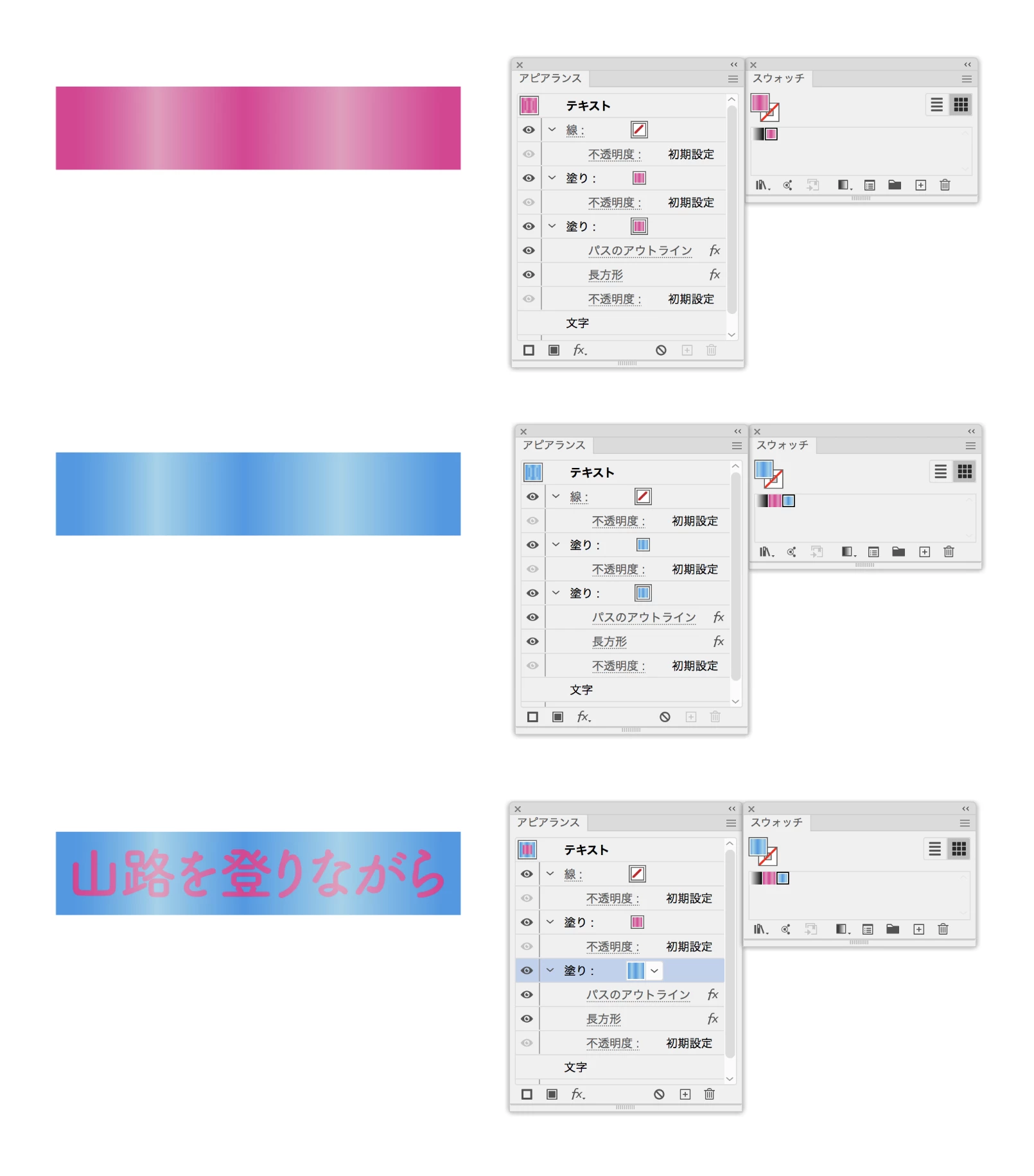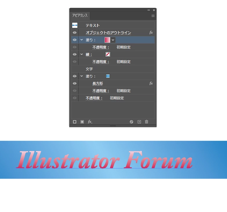 文字はピンクのグラデーションにしたいので、テキストにピンクのグラデーションの塗りをつけました。