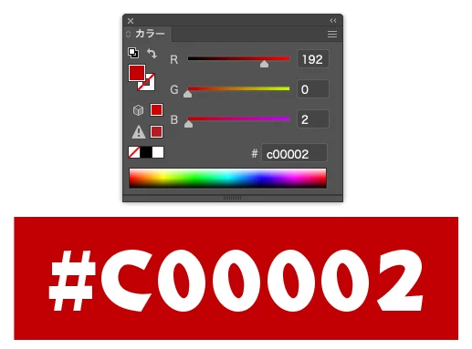 例えば色見本で「#C00002」という色があります。