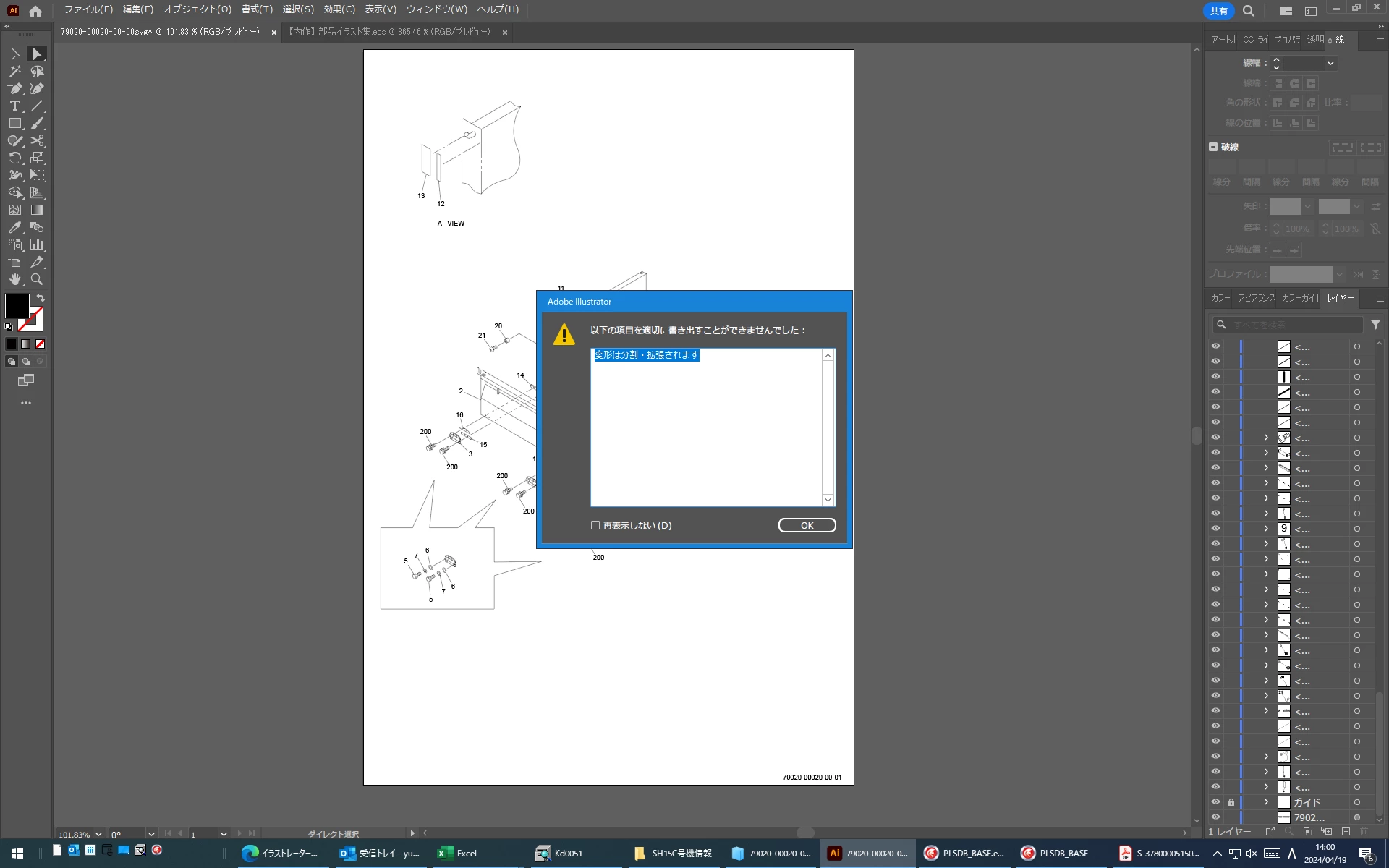 SVG形式でのイラスト保存時に、「以下の項目を適切に書き出すことができませんでした。」との警告が表示され、「変形は分割・拡張されます」との項目が出ます。