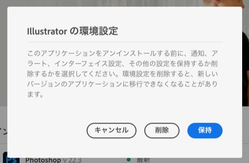 アンインストールの際、「削除」ボタンを押して環境設定を削除してください。