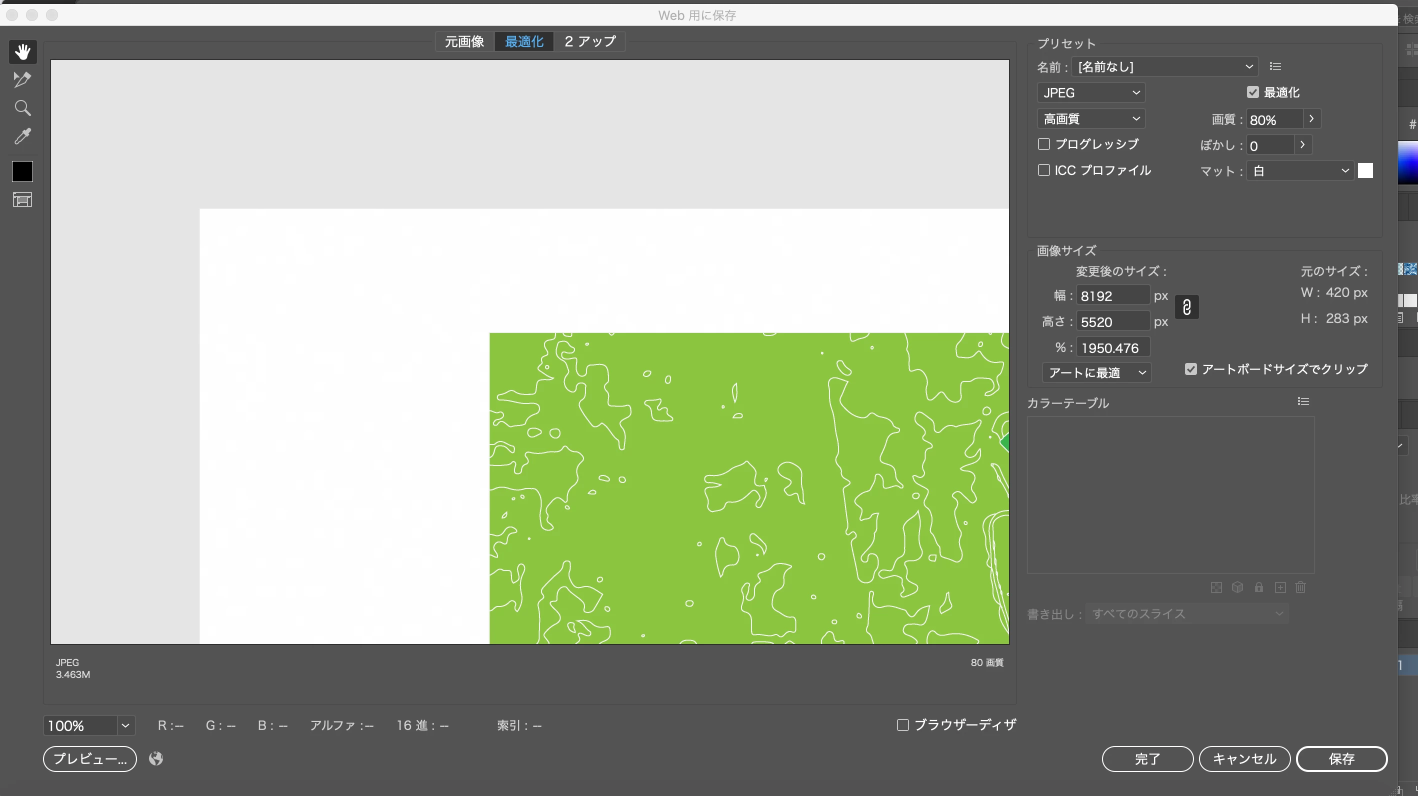 これ以外にも何度か「web用に保存」で同じような事態が発生し、その度にアプリを強制終了していましたが。