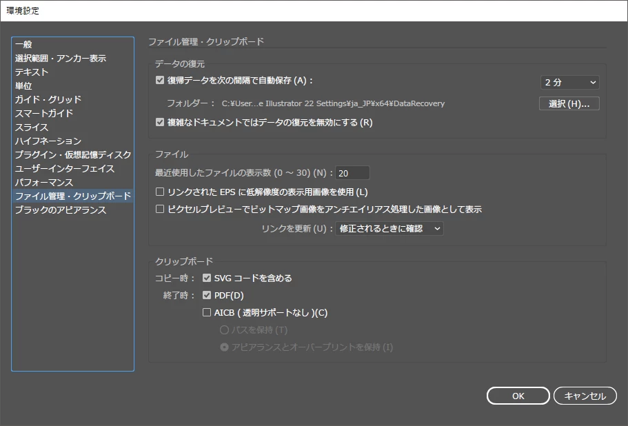 illustratorCCの作業中のデーターのエラー作業中の内容はどこに保存されるのでしょうか