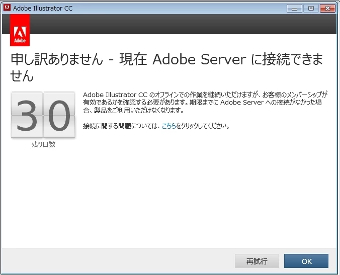 先程、イラストレータを使用しようとしたところ下の画像が出ました。