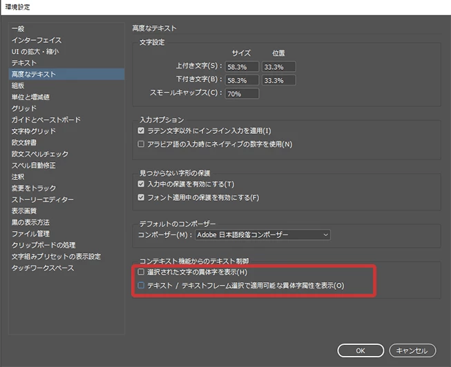 ・もしくは、入力時のトラブル発生回避のため、環境設定/高度なテキスト で、予め異体字の候補表を表示しない環境設定変更を行います。異体字の候補が表示されなくなりますので、入力ミスを事前に防ぐことができます。