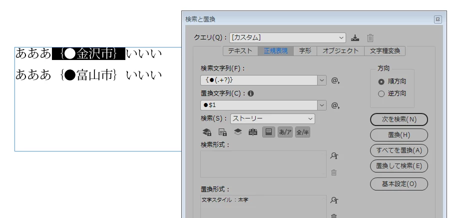 昔、クォークエキスプレスのエクステンションでイージコンポというのがあり、特殊文字で囲まれたところを自由に任意の段落書式を適用することができたのですが、インデザインでもワイルドカードの検索ができるようですがやり方が分かりません。
