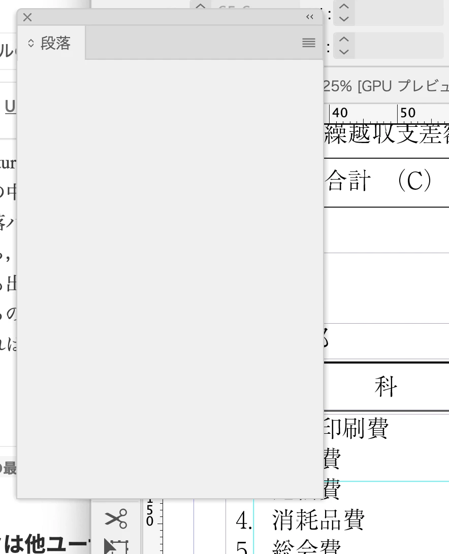 インデザイン 段落パネルの不具合