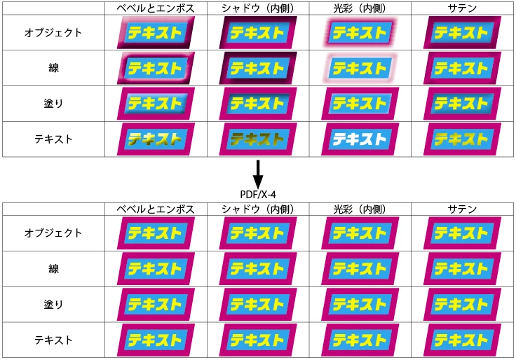 オブジェクト効果が PDF/X-4 形式で保存すると失われる