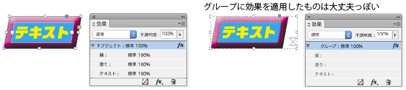 | 問題が発生する傾斜と透明効果が適用されたパーツを探すAppleScript |