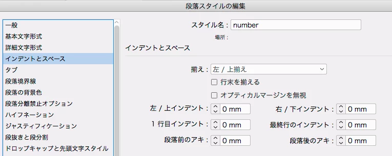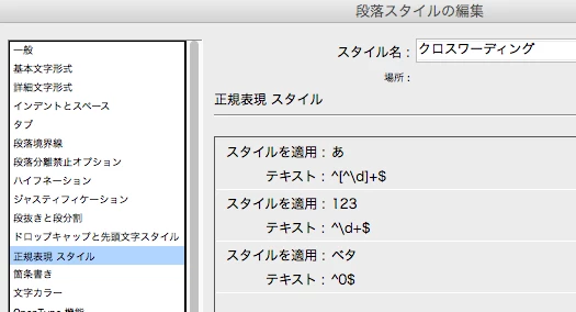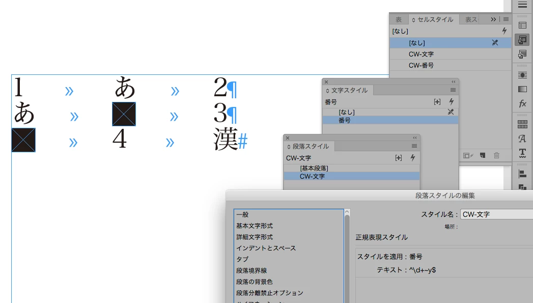 数字とそれ以外(この場合、ひらがなと漢字)の段落スタイルをそれぞれ作る