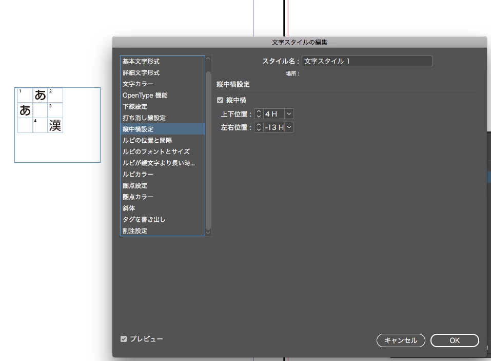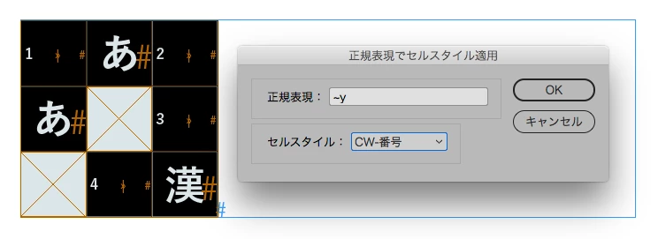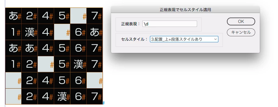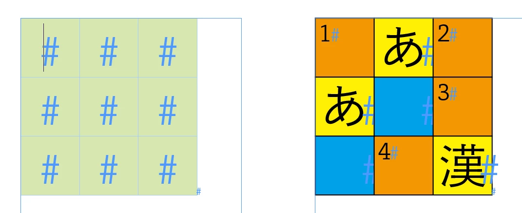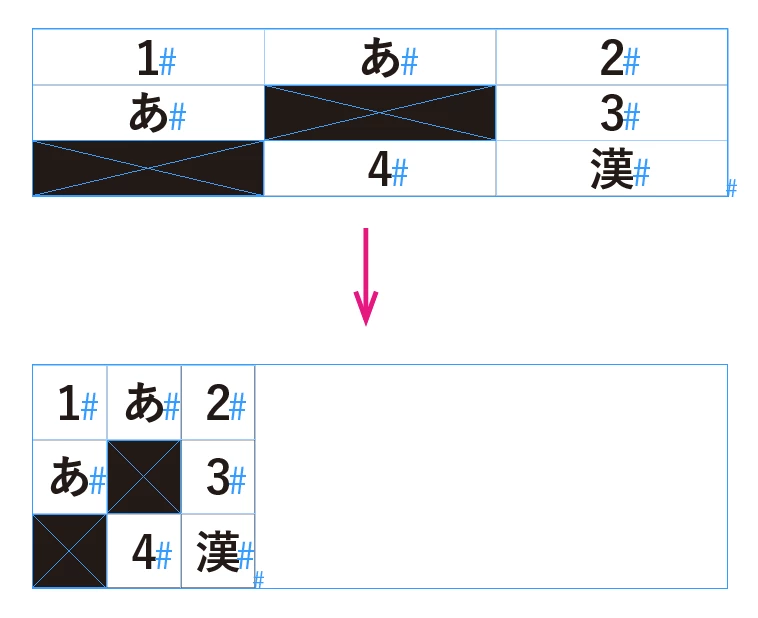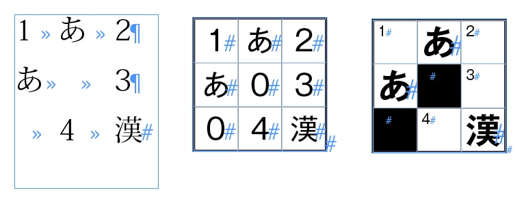 InDesignで図のようなクロスワードパズルを作成する時、