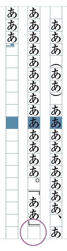 ・おそらくInDesignにおける「弱い禁則」(促音拗音、音引きは文頭で許容)