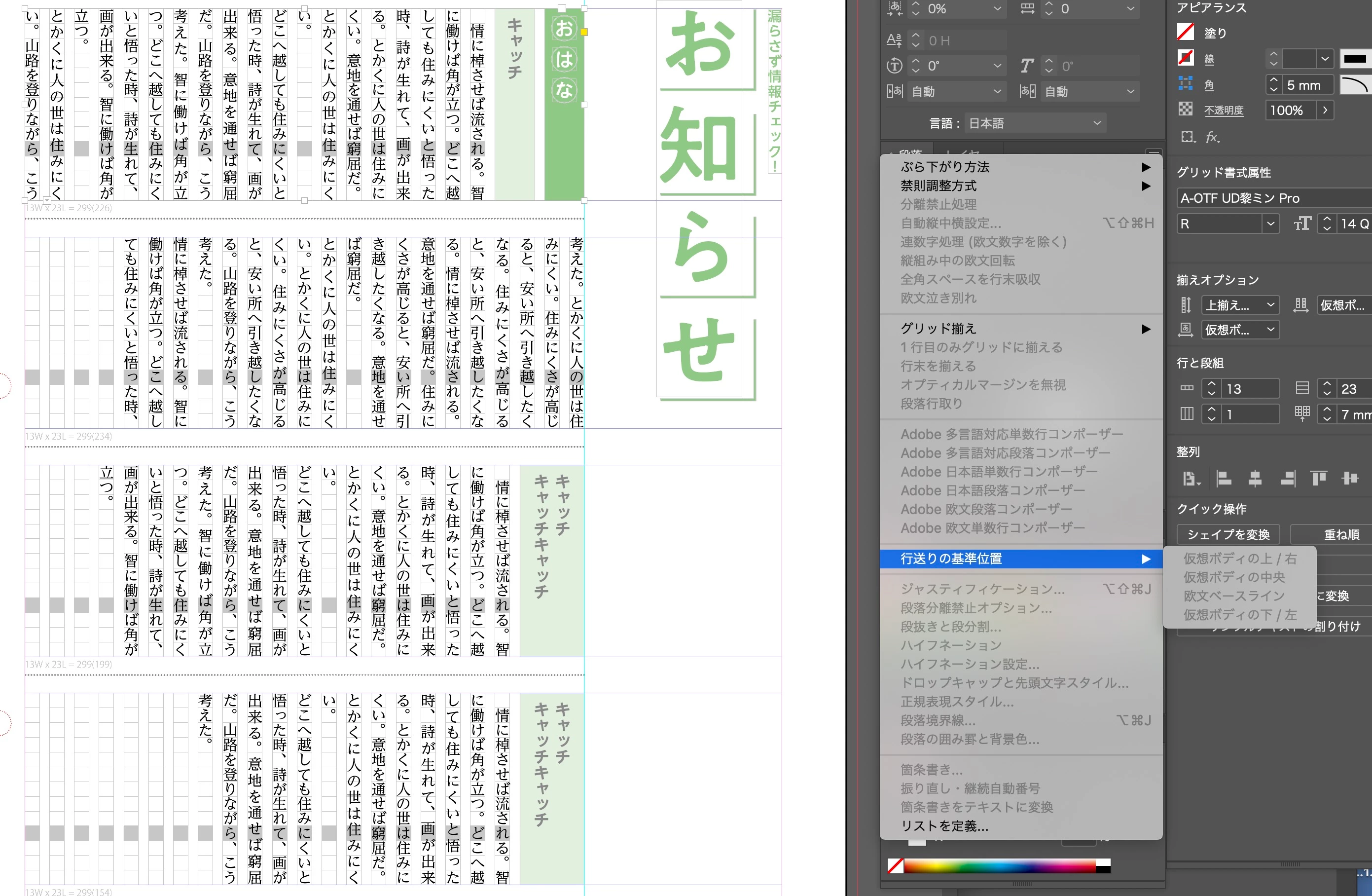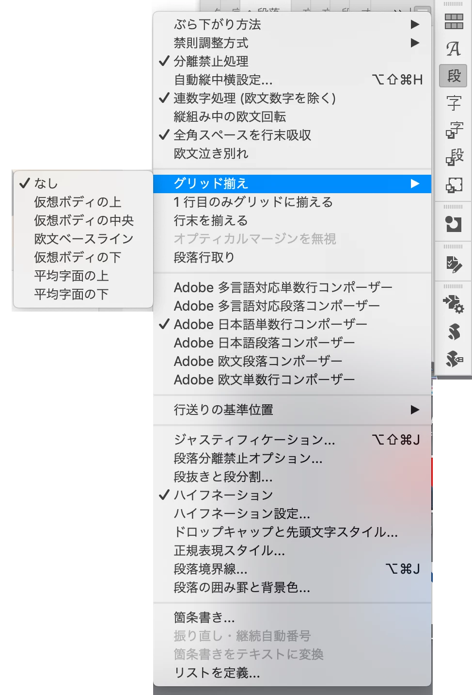 同じテキスト内の別の場所に配置するとグリッドに揃う時もあります。