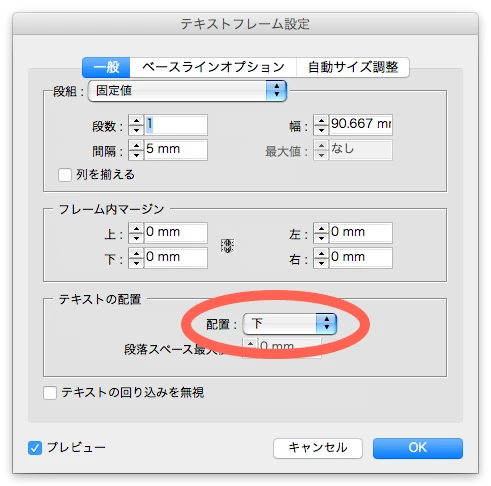 テキストの最下段とページの下端の距離をいつも同じ距離になるようにするには?