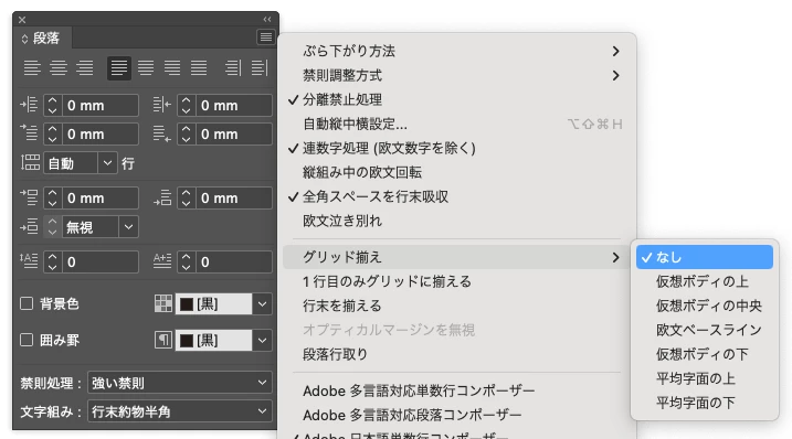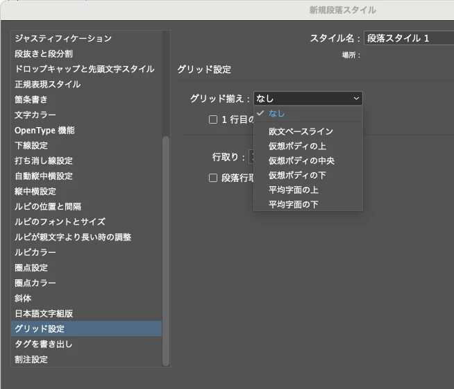 そのテキストに適用している段落スタイルの、「グリッド揃え」を確認してみてください。