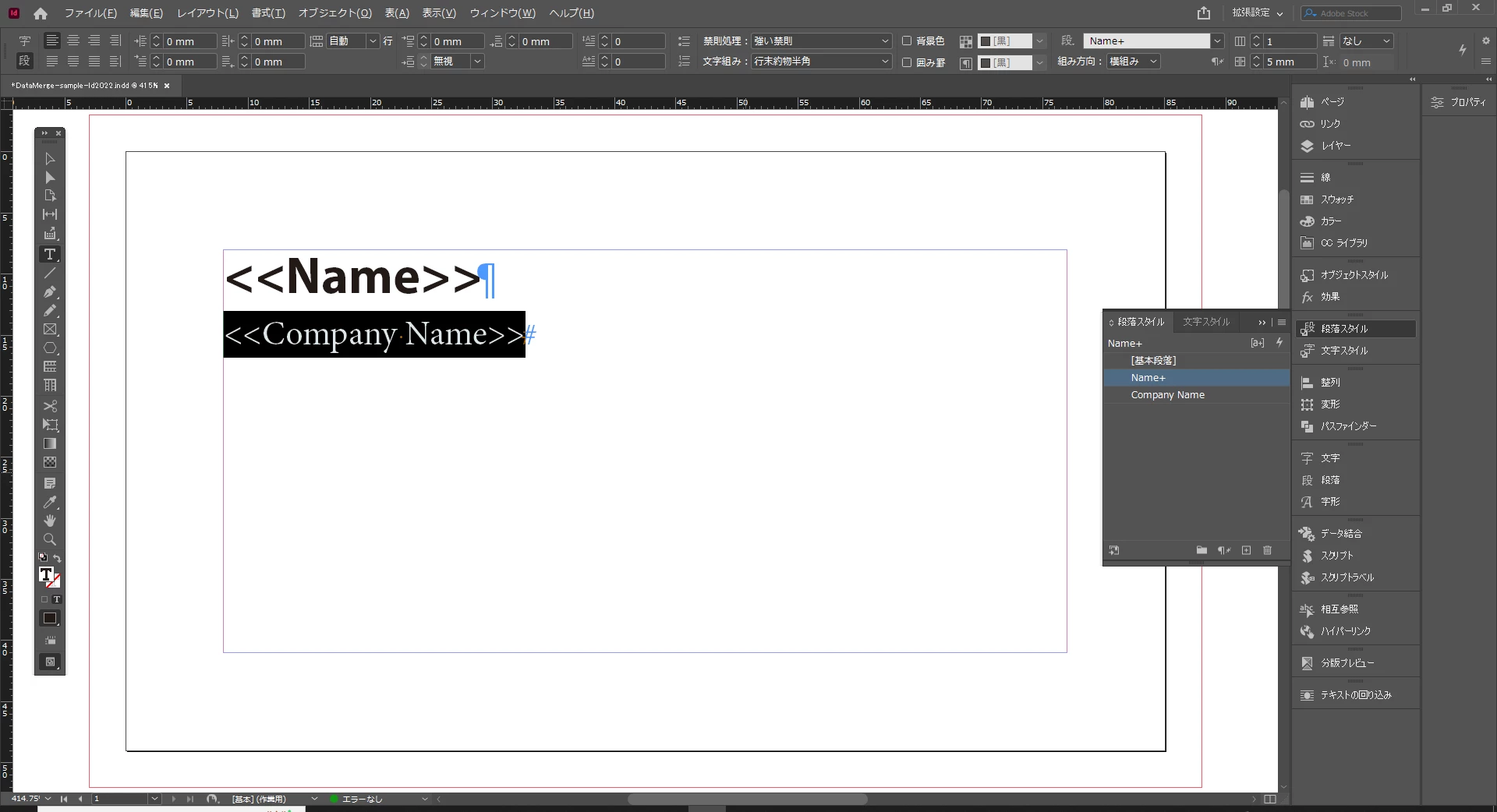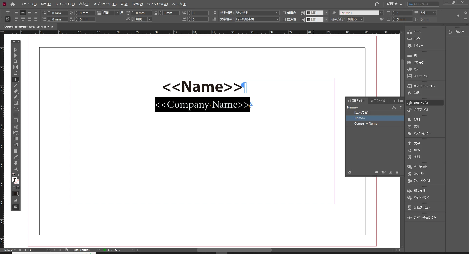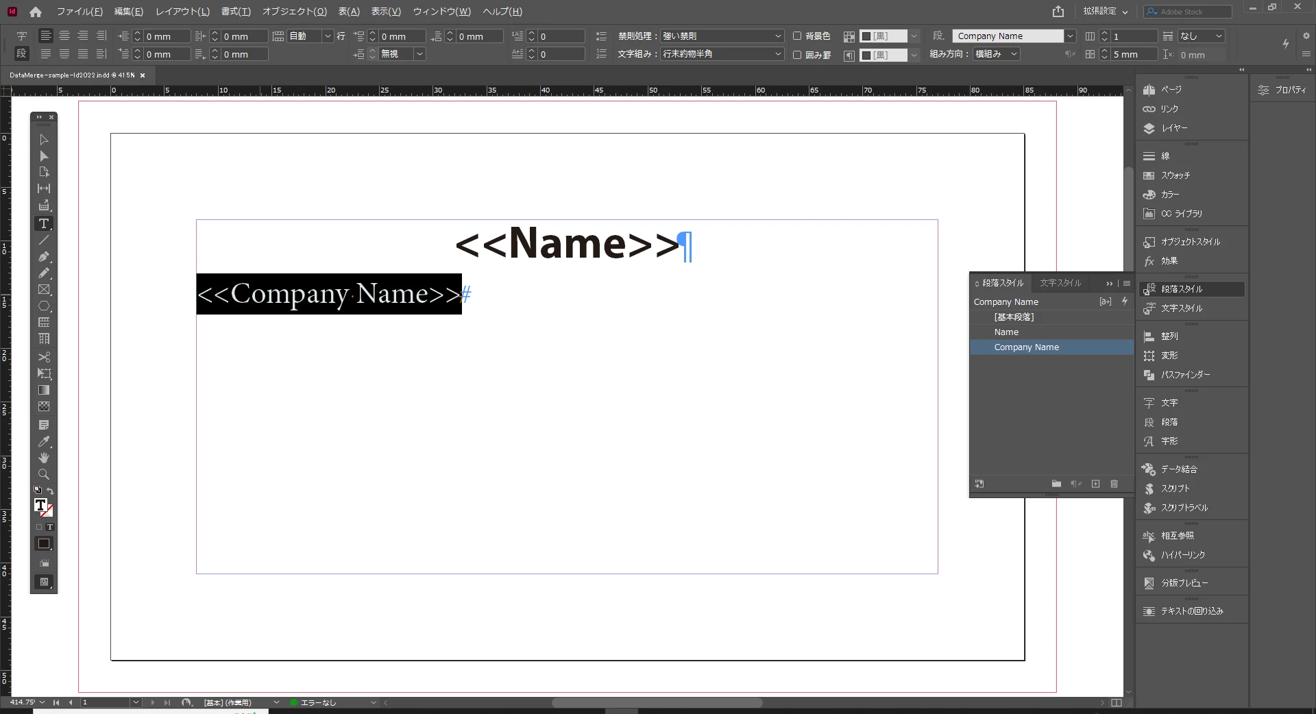 2行目は本来ならば「Company Name」のスタイルが設定されていましたが、「Name」のスタイルのオーバーライドになっています。