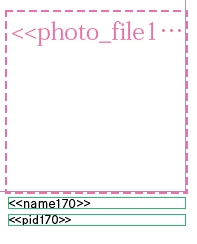 データ結合時にデータ結合パレット内のフィールドをドラッグ&ドロップするとフィレーム内にフィールドの名前が表示されるかと思います。
