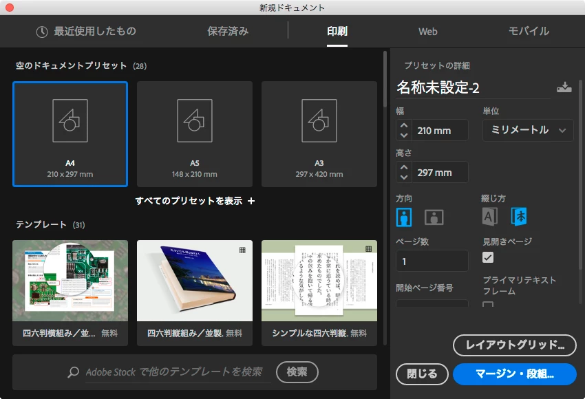 ドキュメントの新規作成にすると、ドキュメント(AA)が方眼用紙のレイアウトになっております。