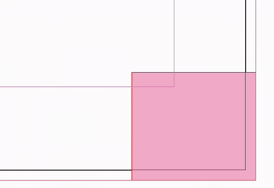 このフレーム枠は、前面に色のついたオブジェクトが重なっていると隠れてしまう性質があります。