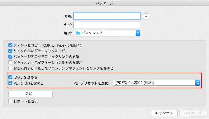 印刷所へは「パッケージ」機能を使ってのデータ入稿をしたいと考えております。