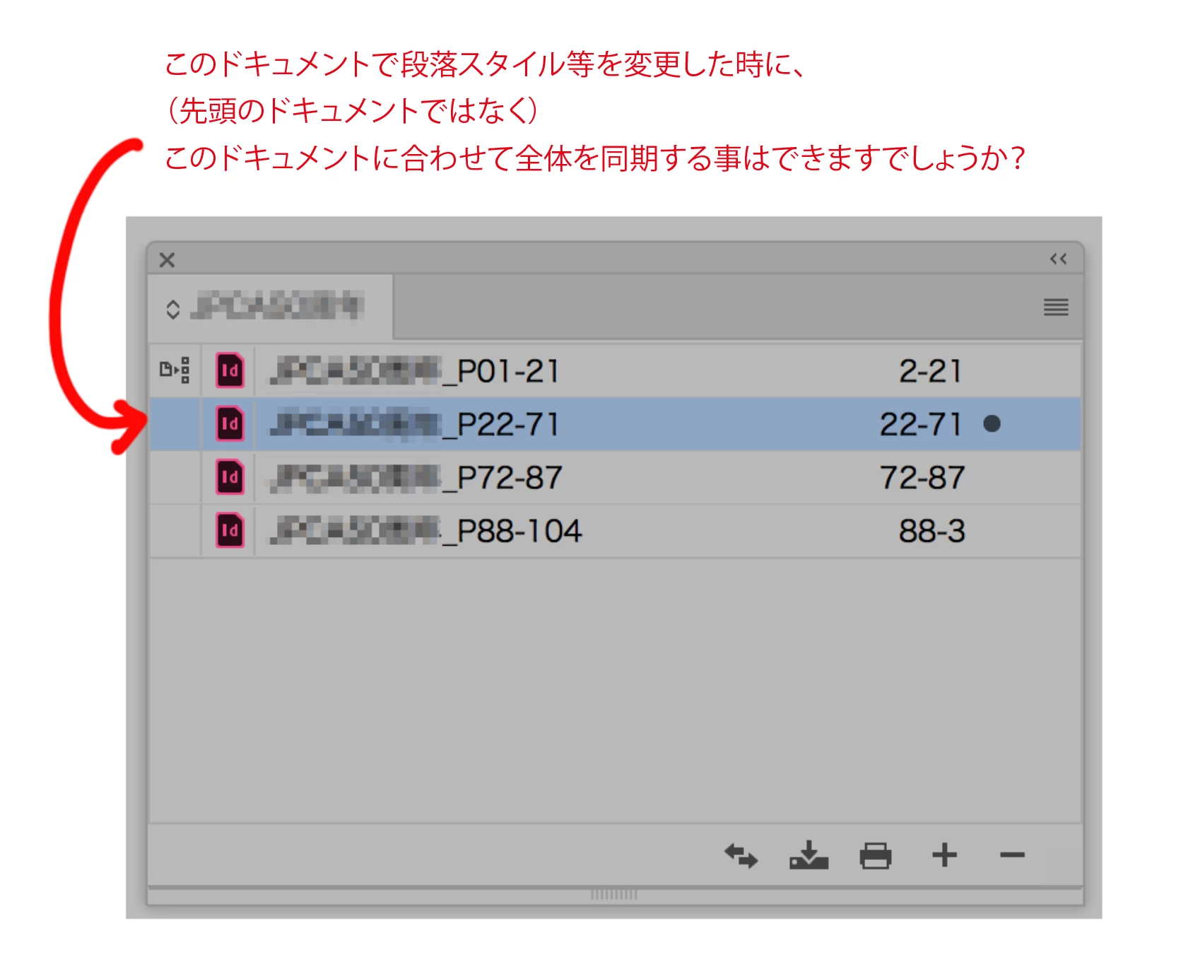 ブックで連結したドキュメントを(先頭ドキュメントでなく)任意のドキュメントで同期したい