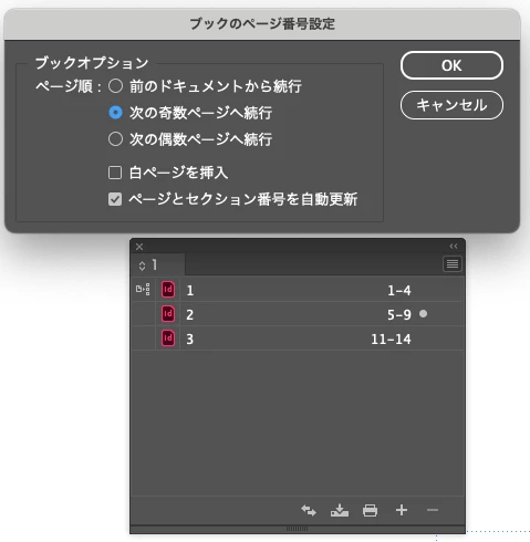 ブックパネルとページパネルの表示と、ドキュメントのページ番号の食い違いについて