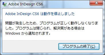 2)InDesign CS6でPDFファイル生成する際下記のようなアラートが表示されアプリが落ちる