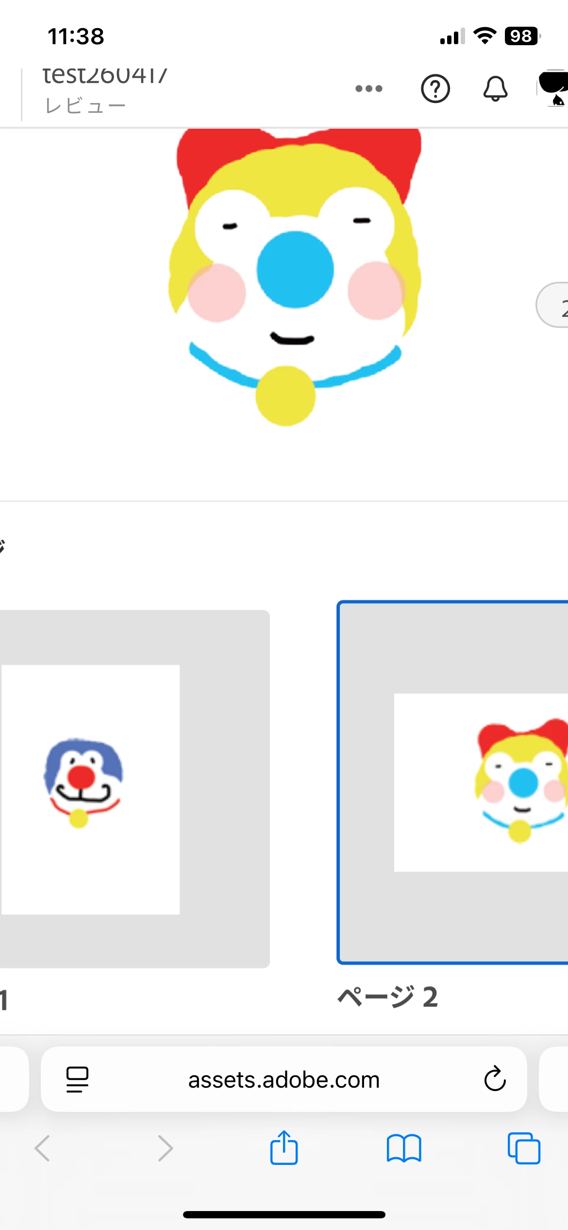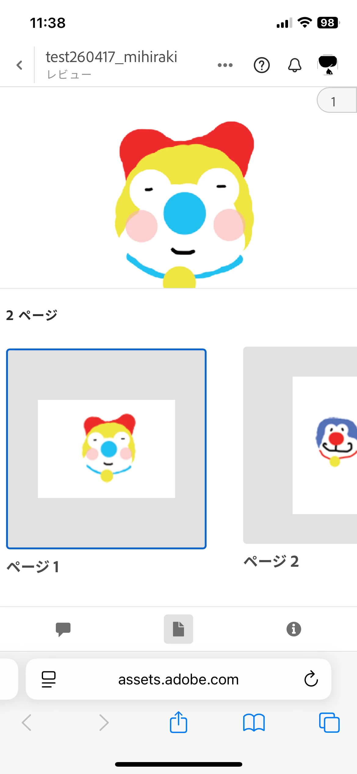 スマホから「レビュー用に共有」を開くと、片起こしのページは問題なく見られるものの、見開きページになると左側しか見られなくなる。