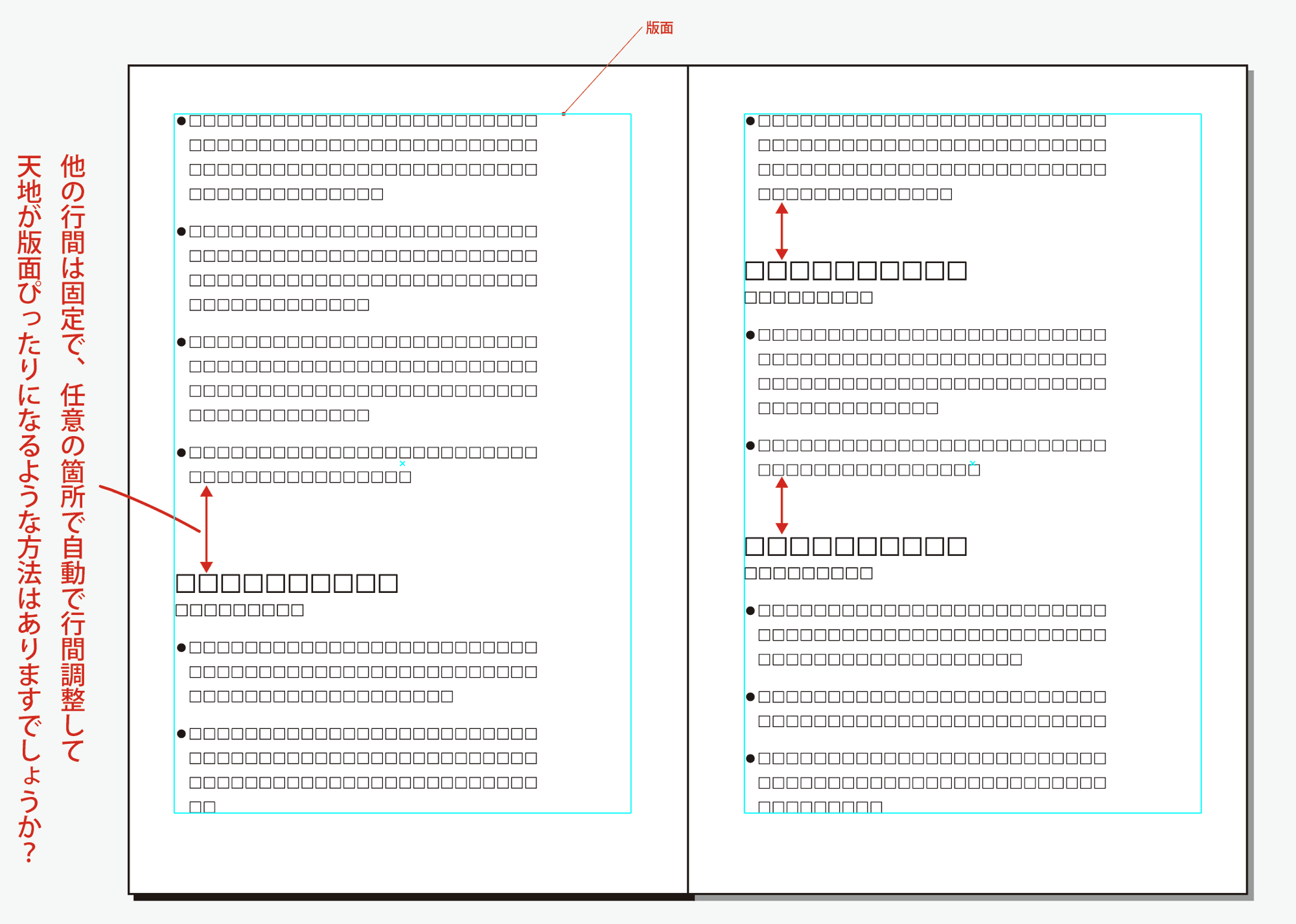 ・現状、アナログ作業で行間を空けて調整しているのですが、自動的に出来る方法をご存じの方がおられましたら、ご教示いただけますと幸いです。