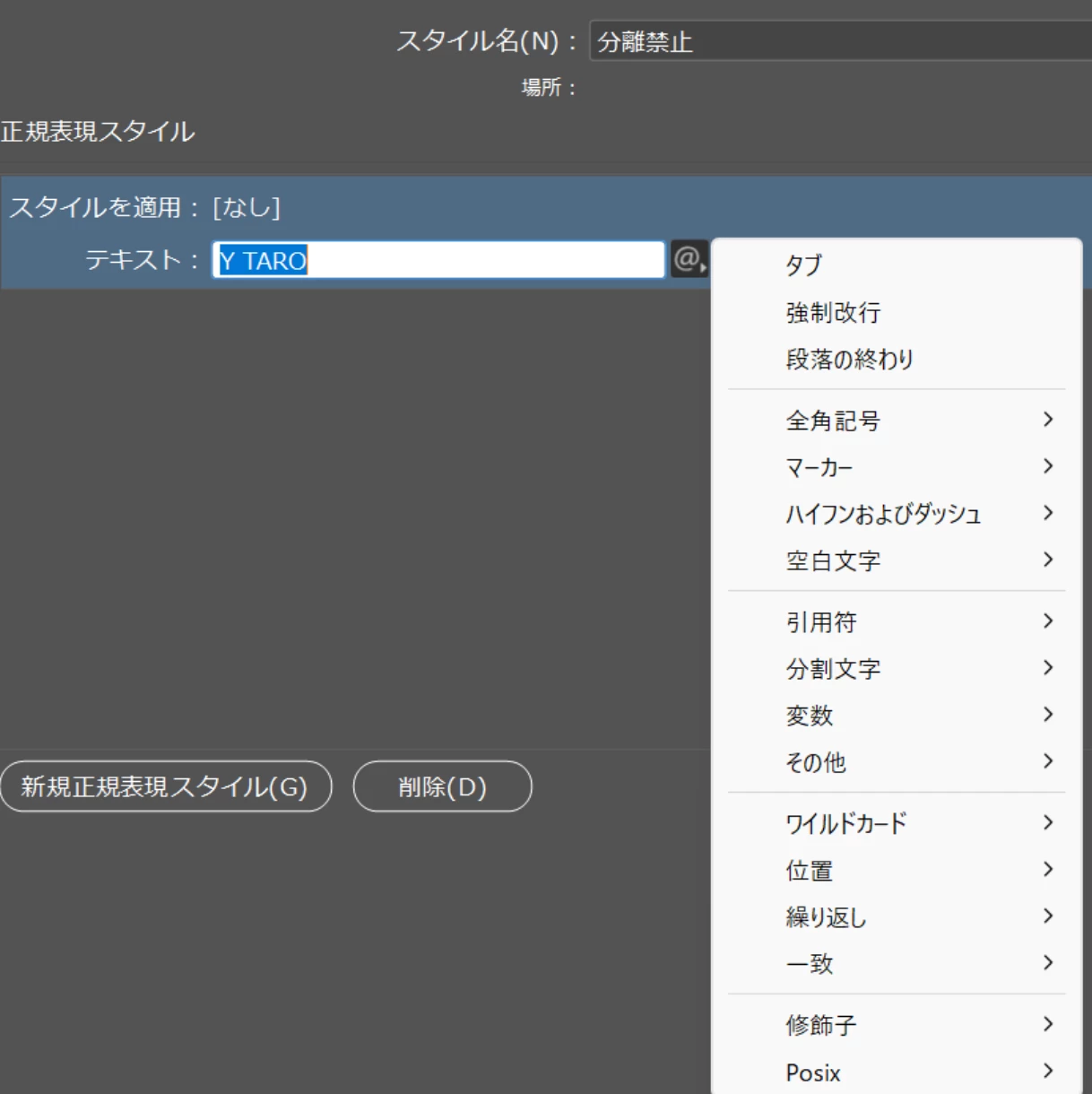 >>こちら自分でやってみたのですが、段落スタイル→正規表現スタイルまではいけたのですが、このあと分離禁止はどこで選択できますでしょうか?途中までのスクショ添付します。
